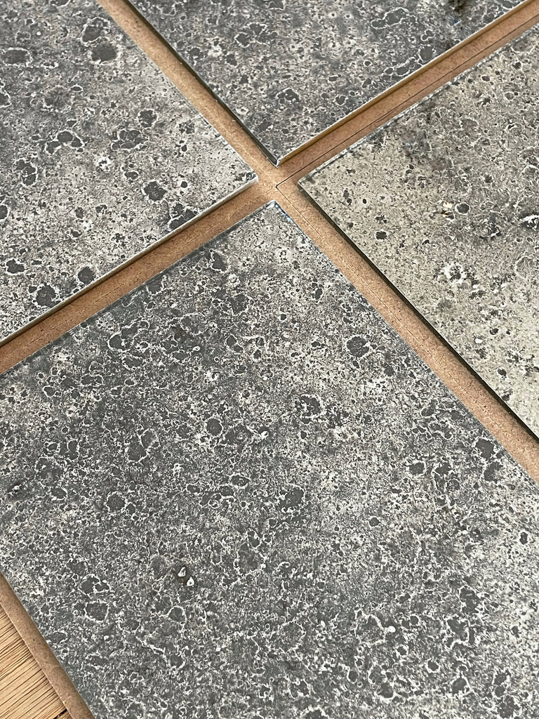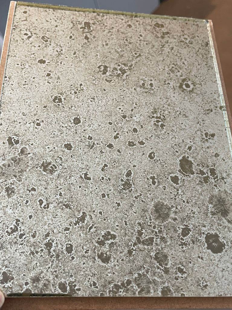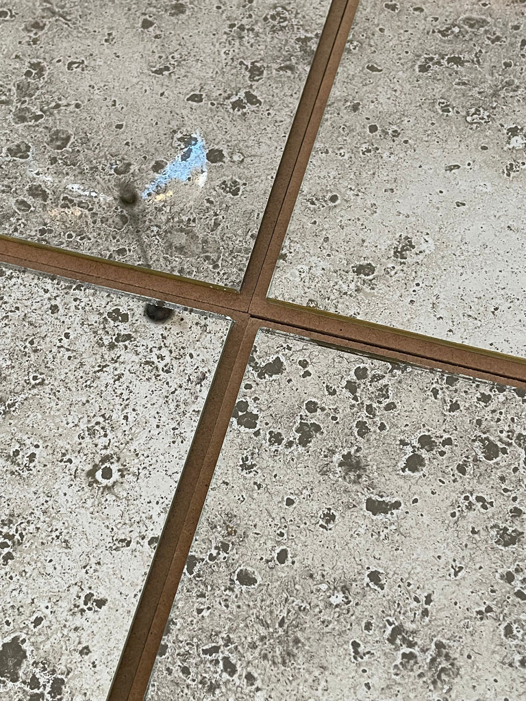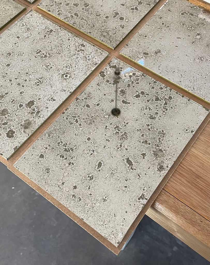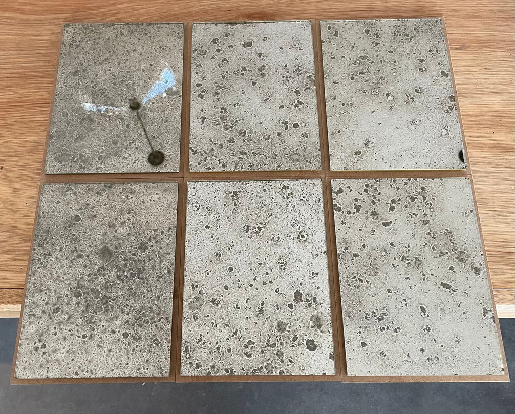 Our current complete range of mirror finishes on clear and tinted glass. We have some interesting reverse gilded, verre églomisé, glass and we are always open to your ideas and welcome commissions to develop different finishes with glass and decorative gilt surfaces too.